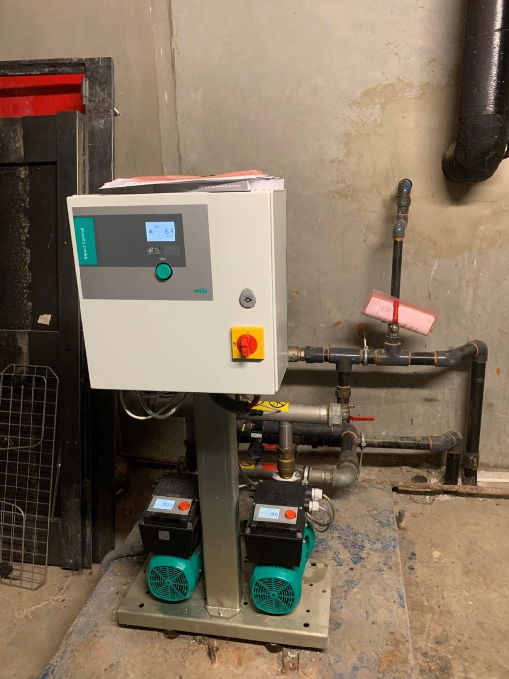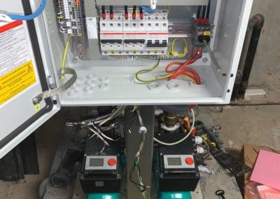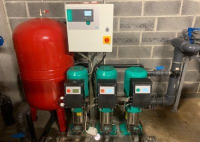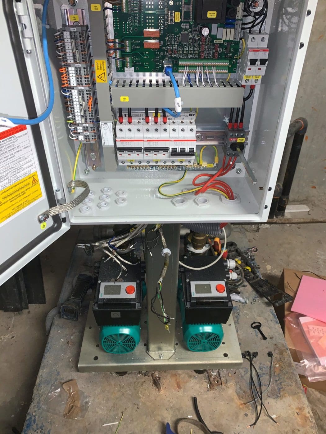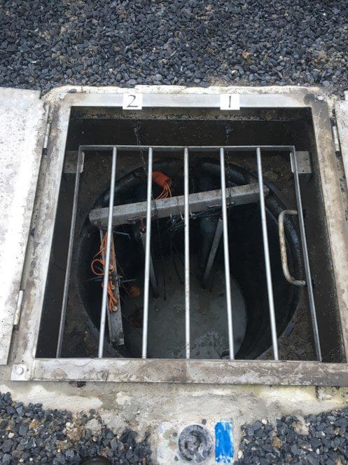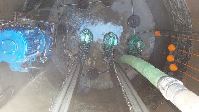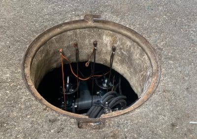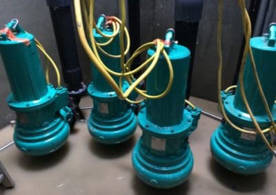 Equipement d’un poste de relevage avec 3 pompes, barres de guidage et interrupteurs à flotteurs