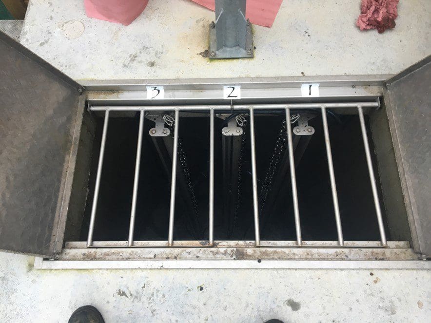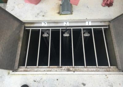 Dégrilleur installé à l’entrée d’un poste de relevage pour éviter le bouchage des pompes