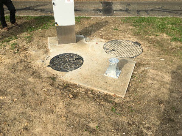 Réalisation d’un chenal de mesure et prélèvement en sortie de station